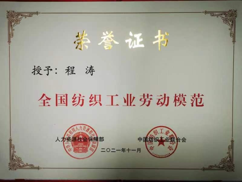 热烈祝贺我司总经理程涛荣获“全国纺织工业劳动模范”称号